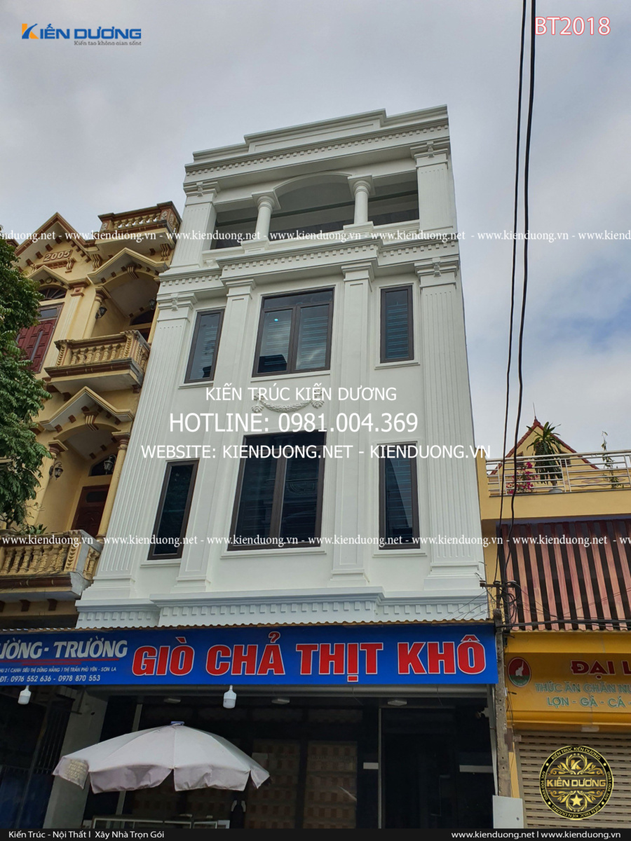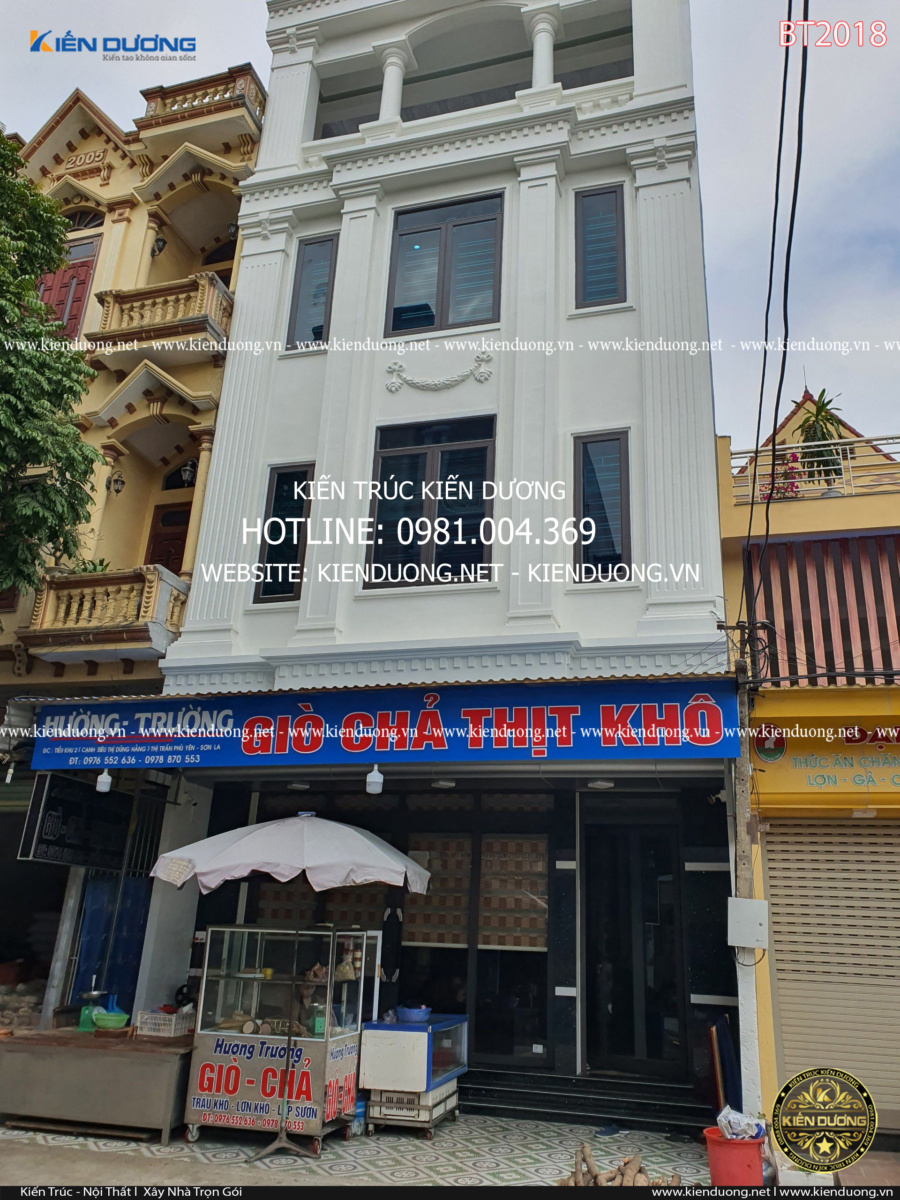Thiết kế nhà phố 3 tầng BT2018 với phong cách trẻ trung, hiện đại dễ dàng chinh phục được gia chủ là anh Trường tại Phù Yên – Sơn La – một doanh nhân trẻ thành đạt vô cùng năng động. Trong nội dung bài viết này, Kiến Dương sẽ gửi đến quý độc giả và các bạn thêm một mẫu thiết kế nhà phố 3 tầng đẹp có không gian kinh doanh riêng, được tạo hình độc đáo khác biệt so với các công trình nhà phố lân cận.
